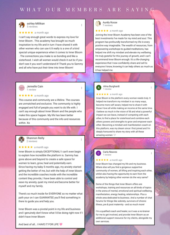 💲 Huge Discount: Academy content valued at circa $3,000. Comes with 20+ Done For You Ebooks with Master Resell Rights so you can start selling straight away. Also includes done for you templates to be able to sell Inner Bloom.